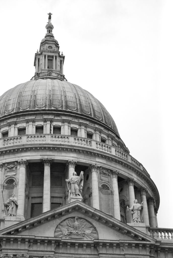 On the pediment above the southern entrance, looking down to the Thames, rears an astonishing Phoenix, who like the cathedral itself is rising from the ashes, reborn again. Beneath it are the words ‘Resurgam’; I shall rise again. It is the only words found on the exterior of the building.