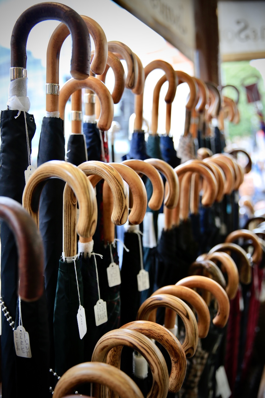 The gentlemen of London have entrusted the making of their umbrellas to James Smith & Sons for over 185 years. Whether combining a bowler hat with the Slim Rolled Umbrella in The City of London or using a Solid Stick Umbrella as a walking aid, the little umbrella shop on the corner of New Oxford street continues to produce umbrellas of the best quality – James Smith & Sons website