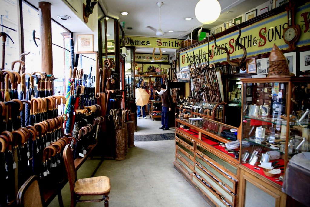 Born in 1830, amidst the clatter of horse-drawn carriages on cobbles, streets crowded with top hats, bowlers and boaters, the founder James Smith opened a small shop just off Regent Street, dedicated to the manufacture and sale of umbrellas and walking sticks. It comes as something of a surprise that in a country where there are at least 100 ways to describe rain that up until the early 1800s Londoners often braved the elements with little more than a flimsy parasol or a rolled newspaper. Smith saw an opportunity, a city drenched a large amount of time in rain, needed more effective barriers against the sky. Thus those early umbrellas James Smith manufactured in the West End quickly gained a reputation for their durability, excellence and elegance.