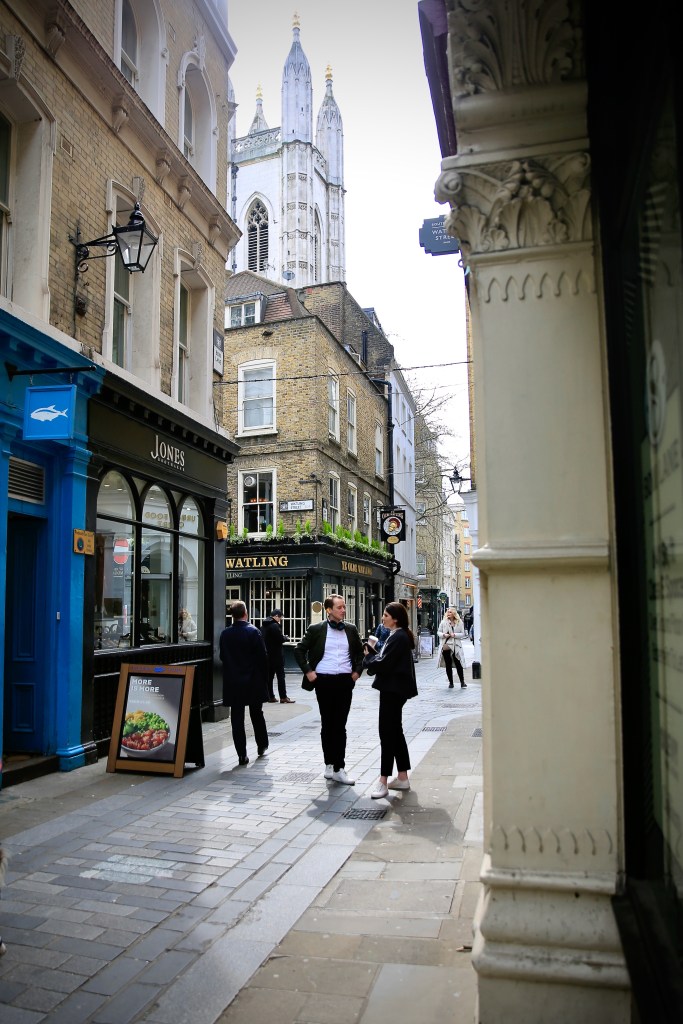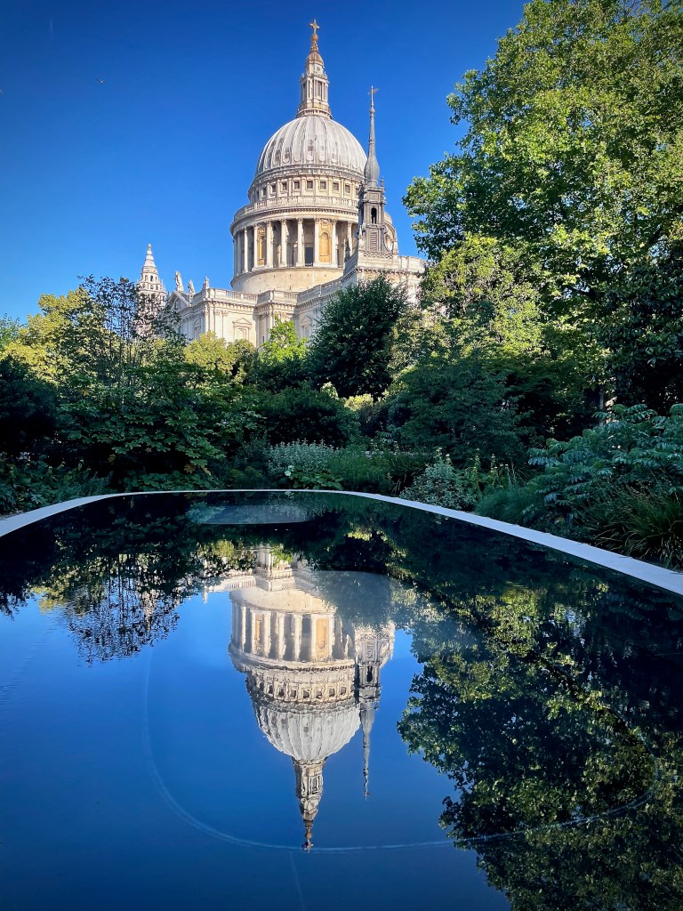 “A meander around St. Paul’s” takes you through various periods of the city’s history, beginning, surprisingly, in a tiny hidden garden with an inscription dating back three millennia to the Assyrian King Shalmaneser. This city is full of surprises. Crossing Eastcheap, we pass through Paternoster Row and Square, once the center of Tudor publishing and book-making. Then we walk under the last surviving city gate, Temple Bar, before taking in the stunning views of St. Paul’s from One New Change and the Reflection Pool, then continue down an ancient Roman road and into a maze of medieval streets towards the Mithraeum, a Roman Temple underneath Bloomberg’s new European Headquarters. After experiencing the immersive light and audio show of the temple, we explore new public art, several beautiful Sir Christopher Wren churches, the grandeur of the Royal Exchange, Guildhall, the site of London’s Roman amphitheater where gladiators once clashed, and two remarkable parks: one with a moving memorial to the selfless courage of Londoners, and the other featuring the ruins of a church blitzed in the Second World War, once one of the grandest churches of the High Middle Ages, where great queens and knights were buried. If you fancy some food or drink, there is the last surviving Victorian gin palace around the corner, which I will happily introduce you to. What’s not to like.